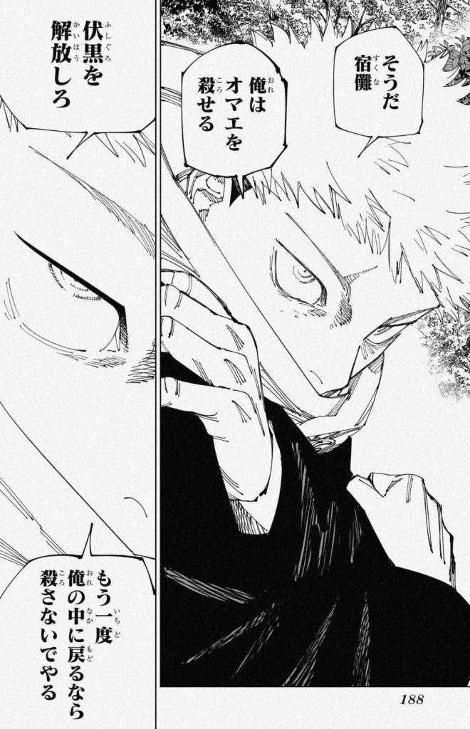 このことをもとに、虎杖と宿儺の戦いを振り返ってみると、わかってくることが多いです。
